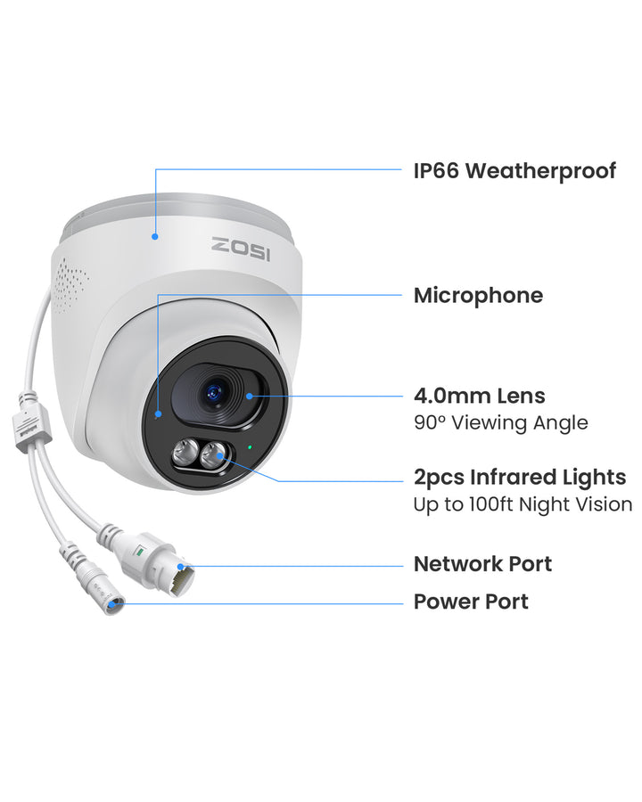 C220 8MP PoE IP Camera, Work with ZOSI PoE NVR